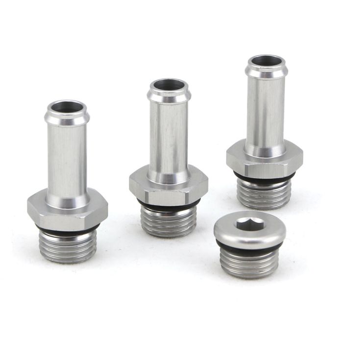 Fitting Kit - Suit FPR1200 (Silver) Allows the use of 10mm ID Fuel Hose with the Turbosmart FPR1200 Fuel Pressure Regulator.