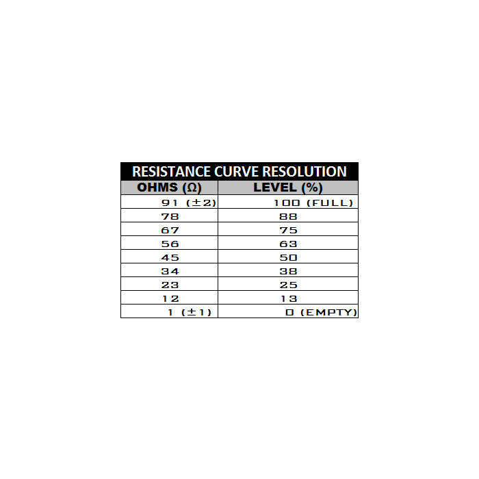 RESISTANCE: 0 (Empty)-90 (Full) Ohms
