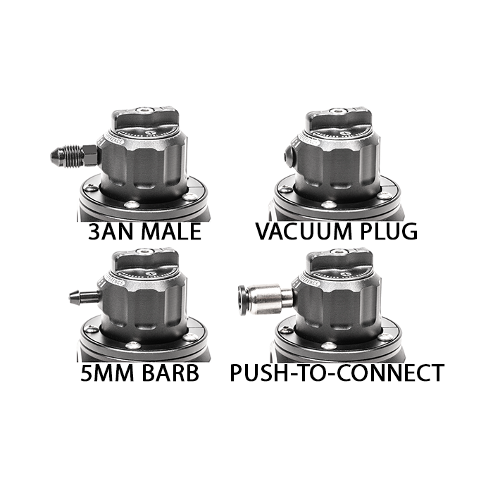 RA-series regulators feature the first tool-less pressure adjustment. A jam nut and set screw are no longer required. With a simple turn of the knob, pressure will be increased or decreased.To aid in adjusting pressure, there are incremental detents that provide haptic feedback to the user. Every detent permits 1psi (+/-0.5psi) of adjustment depending on current fuel pressure.