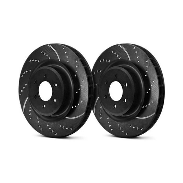 Drážkované a vrtané brzdové kotouče řady GD jsou tou nejlepší volbou pro bezpečné brzdění na silnicích i na okruzích a rychlostních zkouškách u výkonných sportovních a tuningových vozů. Rozšířená zakřivená mezera zvyšuje proudění chladného vzduchu, což vede k nižším teplotám brzdových destiček a kotoučů a zároveň odvádí prach, nečistoty a horké plyny lépe než tradiční drážkování. Jsou vyráběny z vysoce kvalitní šedé litiny, dimenzovány a tvarovány podle originálních rozměrů za použití nejpřísnějších kontrol kvality a obráběny tak, aby se vešly do extrémně těsných tolerancí menších než 0,05 mm. Všichni dodavatelé odlitků pro společnost EBC jsou certifikováni podle nejvyšších požadavků ISO a schváleni německým TUV.