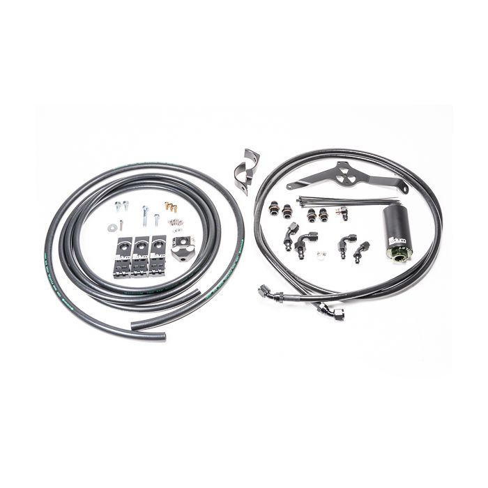 These optional fuel hanger plumbing kits include a filter, hose, fittings, hardware, etc. They add the necessary post pump filtration required when using the Radium Engineering fuel pump hanger.