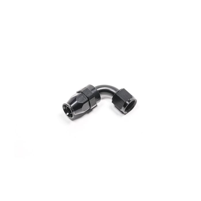 These hose ends are specific to PTFE hose and cannot be used with rubber hose. Each fitting is machined from aluminum and anodized black. Internal O-rings permit swivelling.