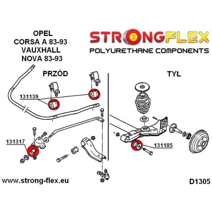 D1305 Zawieszenie przednie tylne Poliuretan Opel Corsa Vauxall Nova