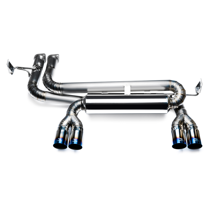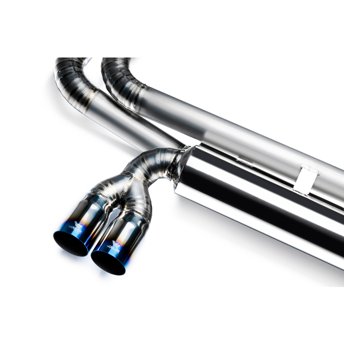Vogler Racing titanium exhaust designed from scratch with properly calculated pipe diameters and perfectly matched muffler sizes in order to increase engine power and torque. Exhaust provides maximum weight reduction over regular stainless steel exhaust systems and guarantee excellent durability. Due to its design it reduces back pressure in the exhaust system. Vogler Racing exhausts also significantly improveing visual aspects of the car and above all quality of sound emitted by the exhaust. Compared to steel titanium is resistant to corrosion, very lightweight and extremely durable at the same time. As a result contact of titanium with oxygen a passivation layer of titanium oxide with a thickness of about 2 nm is formed on its surface and that increases resistance to corrosion. Lightweight and high strength in relation to the material density and high melting point mean that titanium is used to build the most modern aircraft, including stealth fighters and space shuttles.