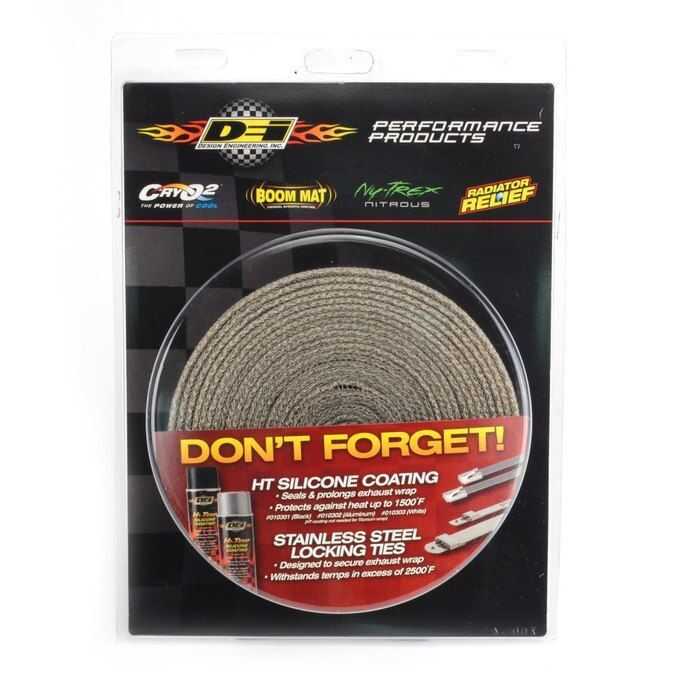 DEI does NOT recommend wrapping exhausts made of titanium. The alloys used in the production of titanium exhaust systems tend to be thin and are designed to dissipate heat quickly. Wrapping any titanium exhaust pipe, regardless of brand, can hold in too much heat, and make the titanium alloy turn brittle and prone to premature cracking. If you are seeking to reduce the heat on a titanium exhaust system, DEI recommends using alternatives such as our flexible heat shields.