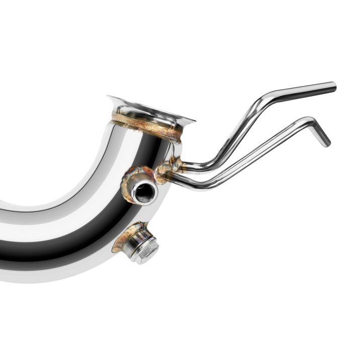 Downpipe is an essential element of tuning every turbocharged car. After its installation, the exhaust system is unclogged, which results in a noticeable improvement in the "bottom" of the engine, i.e. the so-called turbo hole effect disappears and the power and torque are increased. Fmic.Pro Racing Downpipe is the new quality and durability of exhaust system components. Our downpipes are made from high grade stainless steel with 1,5mm thick wall. Each component is carefully CNC made, which results in the repeatability of the finished element. Flexible connectors used in DP production have internal reinforcement, which significantly strengthens the whole construction, thanks to which it is impossible for the whole construction to be suctioned inside.