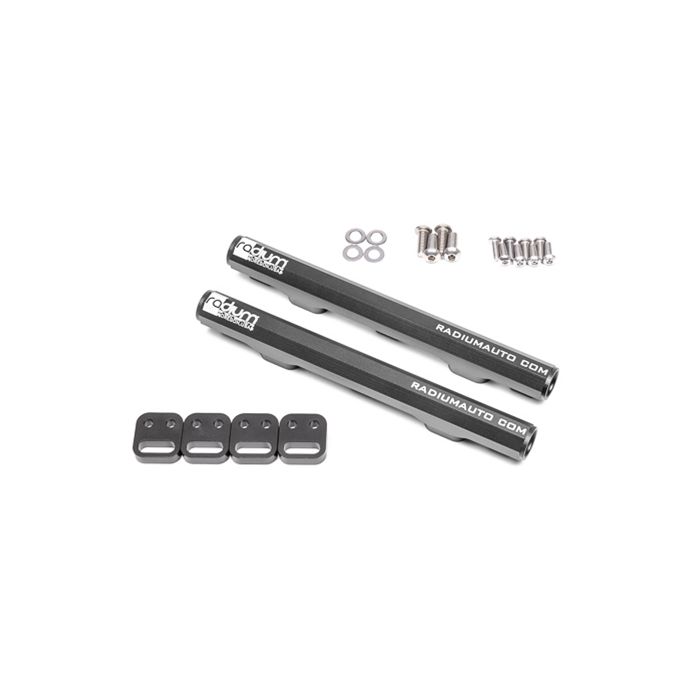 Manufactured with 0.69" large internal bores, the Radium Engineering fuel rails can support all necessary engine power requirements. CNC machined aluminum mounting tabs are included for a factory fit and to maintain the original fuel rail height so both OEM or aftermarket equivalent injectors can work.