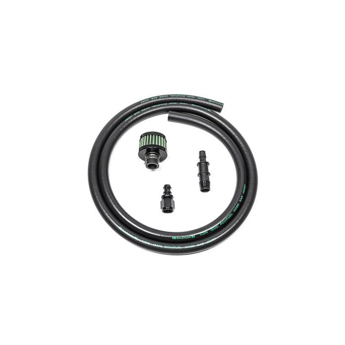 This kit is typically used for standard-fill systems with direct fill or remote fill necks. It includes an air filter, 6ft (1.8m) of 1/2" ID fuel vent hose, and adapter fittings. The kit requires an 8AN male vent fitting.