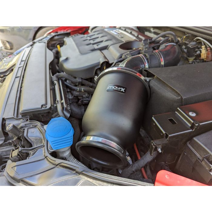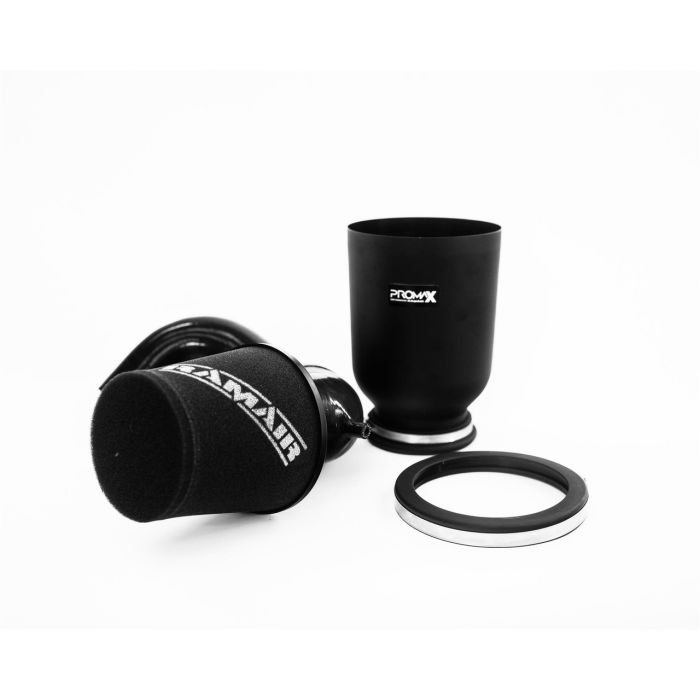 The ProMax enclosed filter has a modular design. Supplied with a bell mouth inlet and base adapter the housing can be combined with a foam Ramair or a pleated Proram filter. The aluminium enclosure shields against engine temps whilst the bell mouth is positioned for an increased cold air feed resulting in an added performance boost.