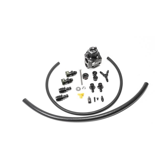 The Radium FPR kit re-routes fuel to cycle through the fuel rails before reaching the regulator and returning to the tank. This is the preferred fuel line routing by Subaru tuners trying to address stumbling issues. The kit installs in the same location as the OEM fuel pressure regulator. Also included are vacuum hose and fittings to re-route the vacuum reference line from the #4 cylinder runner to the intake manifold plenum for a more stable vacuum signal. The optional pressure guage kit 20-0386 can be installed into the unused 8AN ORB port on the regulator.